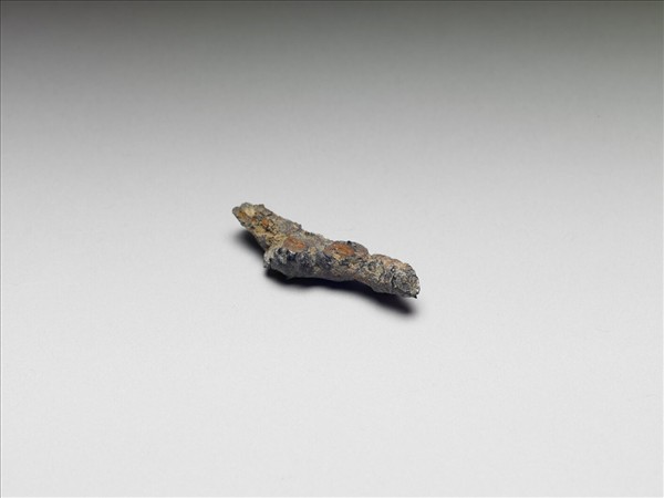 鐵製器物殘件,呈管狀。全器嚴重鏽蝕,表面凹凸不平,其餘部分俱殘。