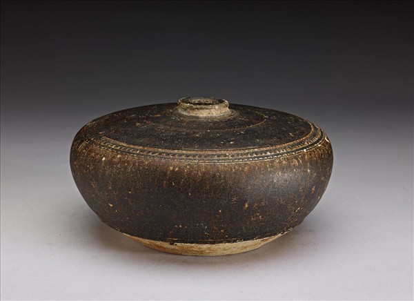 柬埔寨 12-13世紀 黑褐釉刻花罐