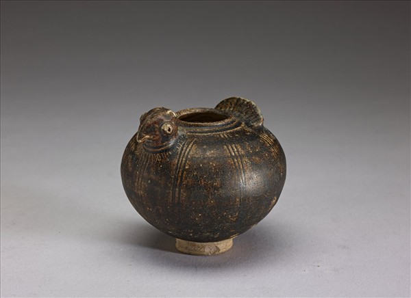 柬埔寨 12-13世紀 黑褐釉鳥首罐