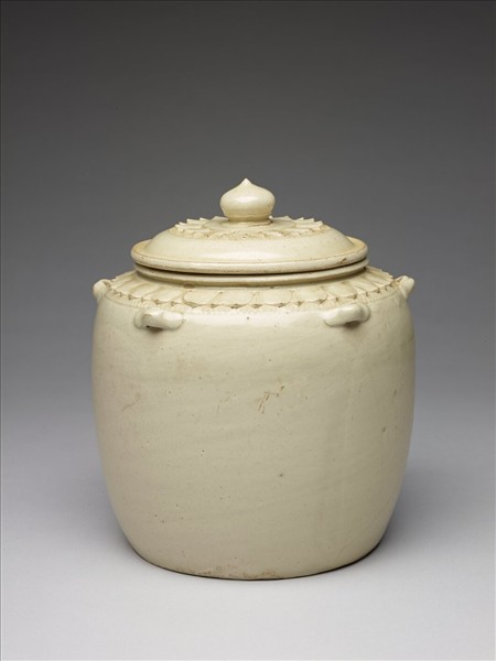 越南 11-12世紀 黃白釉蓮瓣紋蓋罐