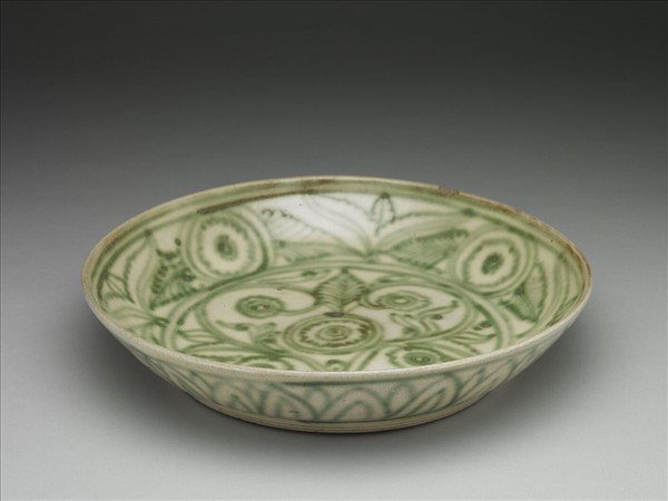 緬甸 15-16世紀 白綠釉花卉盤