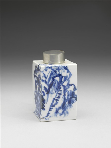 煎茶器組 日本 大正時代 青花後赤壁圖方形茶葉罐