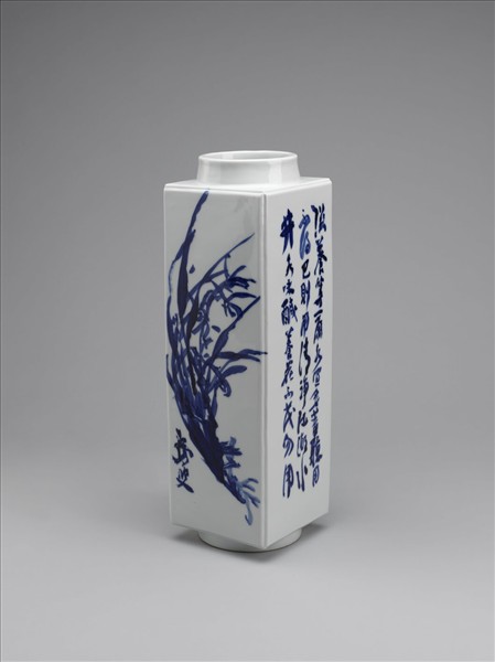 煎茶器組 日本 大正時代 青花蘭石詩文圖方瓶