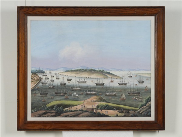 廣州地區的外銷畫,受到西方畫風之影響,不但具有地域性特色,又富於時代意義,充分顯示當時亞洲與歐洲之間的文化交流狀況。 畫面上近景為長州島(Dane),中景可見歐美與中國船停泊於河道上。 黃埔與虎門距30-40公里左右,距廣州20公里左右,船上貨物被裝至官印船送至廣州。1751年有18船在此下錨,1845年增至200多艘。黃埔由數座島嶼組成,最大是黃埔島,東邊有深并荷長州島,船下錨在二島嶼黃埔間的水域,描繪黃埔的風景是站在長州島西端眺望黃埔島,除可以望見島上的琶洲塔,更左處還可見赤崗塔。