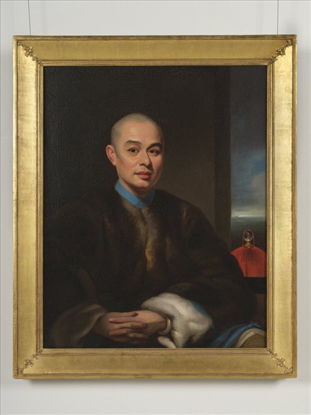 畫布背後註記「JKW Johnstone/26th April/1834」,配上原始畫框。畫中男子身著皮草外套,以四分之三側身坐姿面對觀者,右側桌上可見一頂紅色清朝官帽,官帽上繪製白色透明頂珠(清朝五品官象徵),上方露出部分的開窗,透過窗戶望出去,對比明顯的雲彩使空間瞬然展開。 傅樂治指出林呱即關喬昌。呱為官的別音(但廣東東省文史館司芳女士則認為可能源於粵音館)。此外,依1835年《廣州紀事報》的資料林呱為Geroge Chinney(1774-1852)的學生。Chinney於1825年移居澳門友人Christopher Fearon家,據Fearon家人的口頭傳說,當時關喬昌正在Fearon家做僕人。Chinney的畫風以奔放的筆觸、明亮的顏色、強烈的對比為主要特徵,被稱為華麗樣式(英國皇家美術院、美國Apollo Club、波士頓圖書館)。美國商人Forbes在回憶錄(Personal Reminiscences)提及他曾請Chinney畫像,然後又把這幅肖像送到Lamqua的畫肆複製。香港藝術博物館藏有他1853年所作自畫像,自題52歲作於1853年。