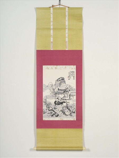 富岡鉄斎死後的作品被記載為「大正十四年一月/九十叟鐵齋」。橋本独山在外箱墨書「遺墨」、書寫的時間則是「時過初夏」,表示箱書是在鉄斎死後寫的,從緣由書可得知寸紅堂主委託独山寫了箱書。富岡鉄斎近年的研究顯示,大正13年(1924)起,初秋左右的作品開始用九十歲的落款。鉄斎死於12月31日除夕,12月上旬左右痼疾的膽石症發病,中旬一度轉好,年底卻又複發。31日中午,病床上雖可談話但下午突然去世。本作品的紀年「大正十四年一月九十叟」,推估為大正13年9月到12月上旬左右製作,可視為鉄斎最晚年的作品。相較於其他畫作,本作品雖略感無力,但是作為煎茶器套組的掛軸,佈置在和室壁龕中依然是非常合適。