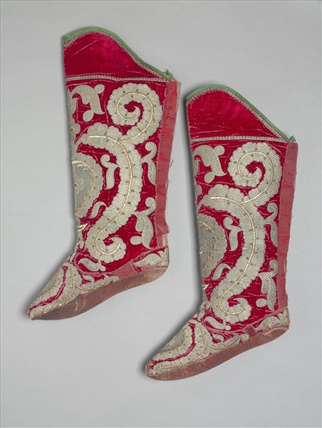烏茲別克 紅地金線刺繡絲絨靴