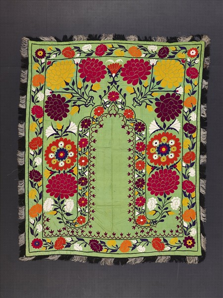 烏茲別克 綠地多彩花卉紋蘇紮尼刺繡掛飾