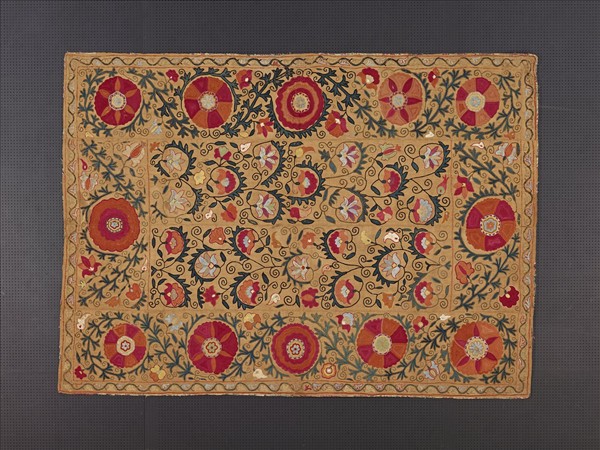 烏茲別克 黃地多彩花卉紋蘇紮尼刺繡掛飾