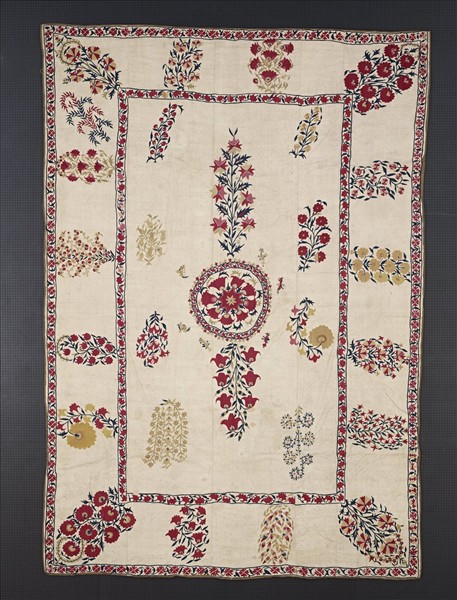 烏茲別克 白地多彩花卉紋蘇紮尼刺繡掛飾