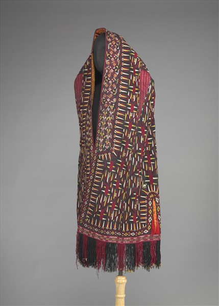 土庫曼 黑地多彩幾何紋雀兒比蓋頭巾
