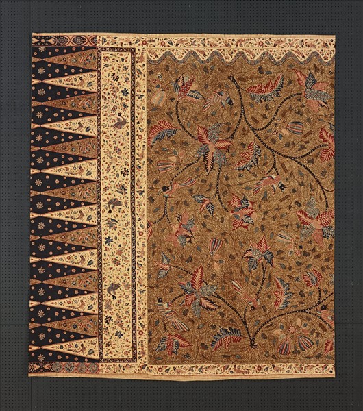 印尼 褐地花鳥頓邦紋蠟染筒裙
