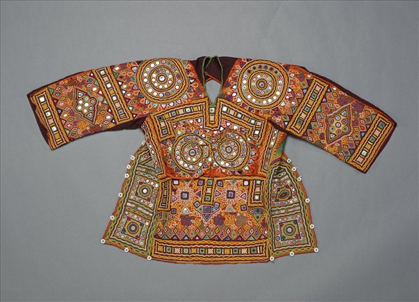 印度古吉拉特的游牧民族拉巴里(Rabari)婦女擅長刺繡,除了製作美麗的服飾,更愛配戴繁複的飾品妝扮自己。傳統婦女服飾露背式棉質短衣(choli),繡滿彩色的圓形、方形幾何圖案,並鑲入小鏡板,滿底的裝飾讓整件上衣更顯珍貴絢麗,是婚禮中新娘的服飾之一。
