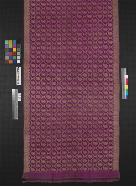 南亞民族服飾紗麗(sari),是一幅長約五米以上的長布,以緯線織金構成卷葉菱格紋,格內飾以花朵草履蟲紋飾,紗麗的邊飾首面(pallu)大面積織金紋飾,極其眩目華麗。