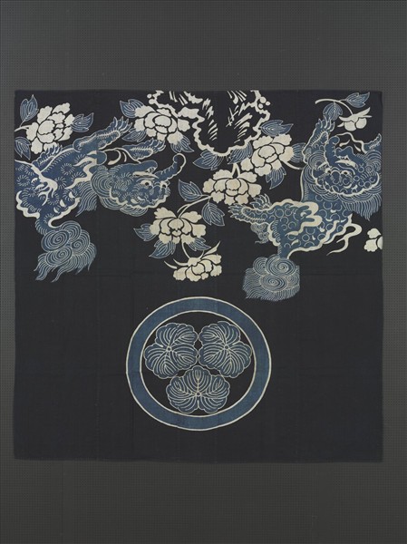 日本 紺地雙獏牡丹紋描染被套
