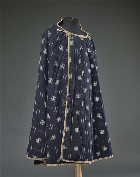 日本 紺地幾何紋絣織風衣(合羽)