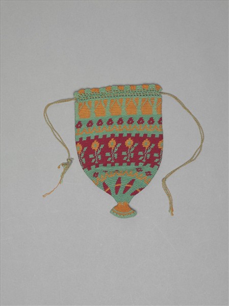 以編織技法製成的小袋子,用針或鉤針工具類似於土耳其蕾絲的作法,藉由疏針、密針達到鏤空效果,紋飾以花卉、草葉、幾何、線條等最常見,天使圖案則令人驚艷。