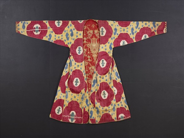 烏茲別克 黃地紅花紋伊卡外袍