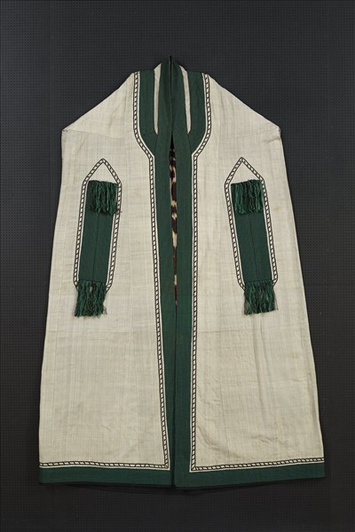 白地長袍,表布由棉及香蕉莖編織,內裡則縫製多彩絲棉的伊卡,是一種斗篷式服裝帶有裝飾用假性長袖,兩袖被固定並垂於後背上。穿著時披在女性的頭上,完全包裹。而面部則戴著馬鬃編織的堅硬長面紗(chachvan),遮住臉面。