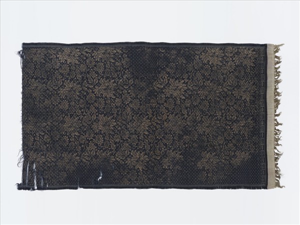 中國 藍地印花纏枝牡丹紋緞