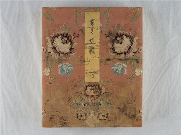 本書為紙本嵌貼織品,分上下兩冊,此件為上冊,連頁經折裝,收錄了各種織品殘片(名物裂),以織金、印金、貼金及緞子為主。