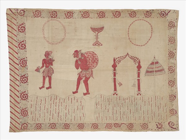 印度 白地人物繪染儀式掛布