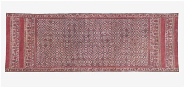印度 茜地幾何花卉紋繪染布
