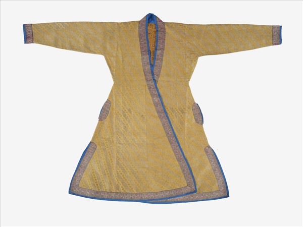 印度 黃地斜條花卉紋織金長袍