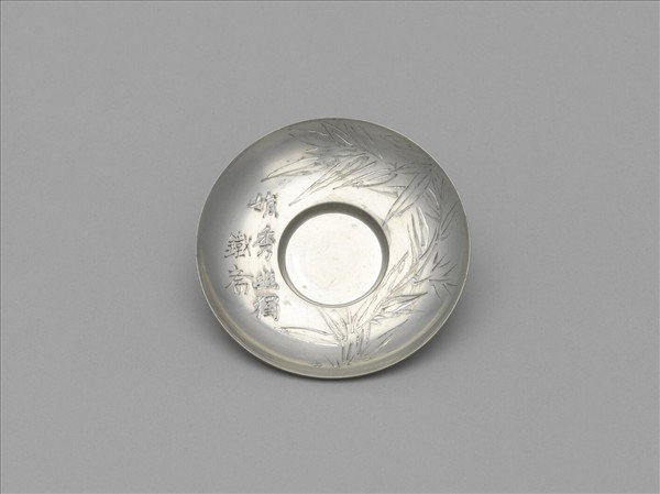 煎茶器組 日本 大正時代 竹圖圓錫茶托「嫡秀幽獨」