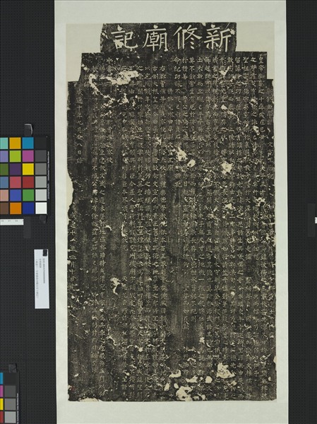 文宣王廟即指孔廟,因唐開元廿七年,追諡孔子為文宣王,以示尊崇。咸通年間,由於農作欠收經年,曲阜文宣王廟老舊失修,孔子卅九世孫孔溫裕有心復其舊觀,奏准出個人薪資加以修繕整理。事竣後賈防撰文記其經過附及孔溫裕蒙獲嘉獎始末,刻石流傳,原石現存於山東曲阜孔廟。碑文及碑額均作楷書,筆畫瘦勁,有柳公權書法清朗的風貌,可以略窺晚唐楷書的趨向。 (20110407)