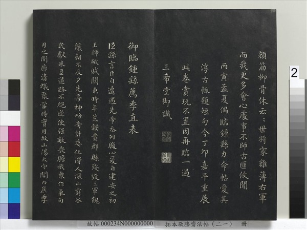 拓本敬勝齋法帖(二十一) 冊 清高宗御臨王羲之東方朔像贊
