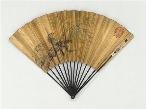 明邊景昭畫柳枝山鳥 成扇