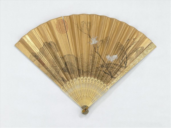 明呂紀蘆柳白鷺 成扇