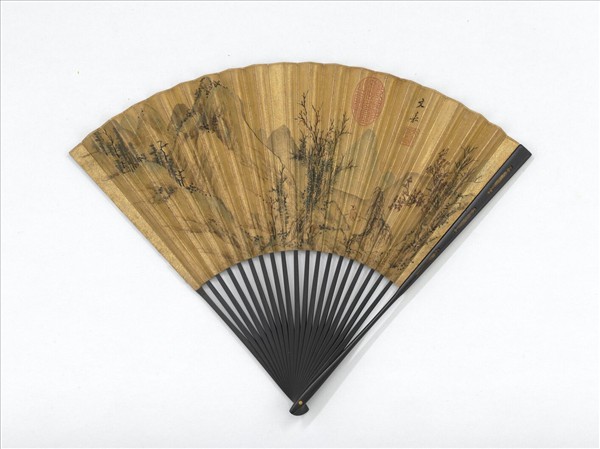 明文嘉畫秋林圖文彭書七言絕句 成扇 文彭書七言絕句