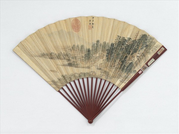 明陳祼畫江村圖葛應典書五言律詩 成扇 葛應典書五言律詩