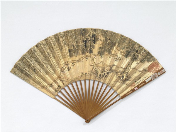 明劉原起畫梧竹草亭文從簡書七言律詩 成扇 文從簡書七言律詩