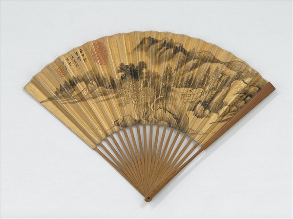 明董其昌畫幽徑白雲並自書五言律詩 成扇 董其昌畫幽徑白雲