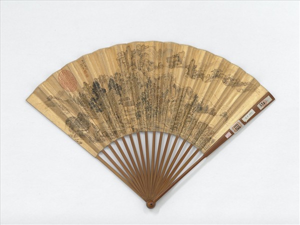 明張宏畫雲山圖陳元素書七言律俞琬綸書七言律 成扇