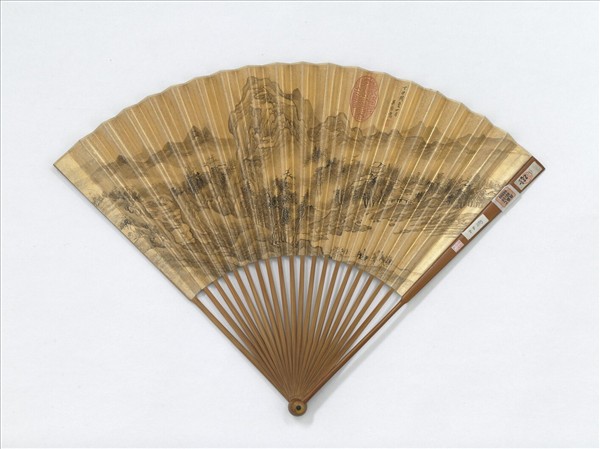 清吳焯畫溪山行旅明董其昌書七言絕句 成扇