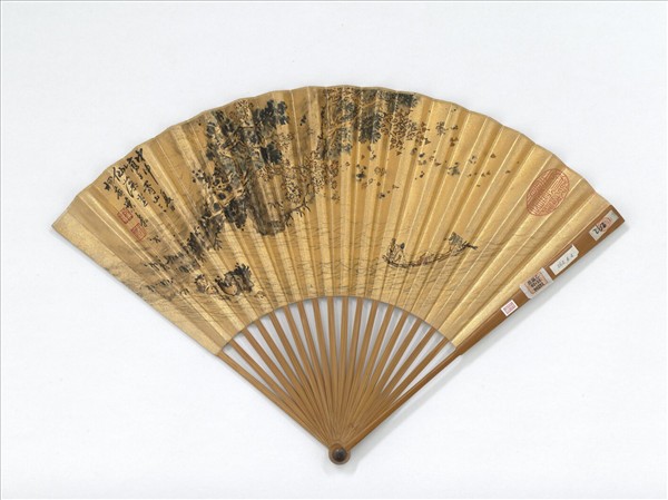 明葉翥畫石壁漁舟米漢雯書五言律詩 成扇 葉翥畫石壁漁舟
