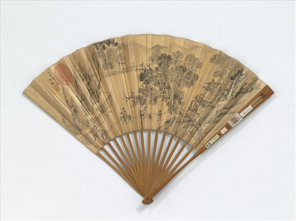 明南鎮畫山水圖杜大中書五言律文從龍書五言律文嘉書五言律周天球書七言絕句 成扇