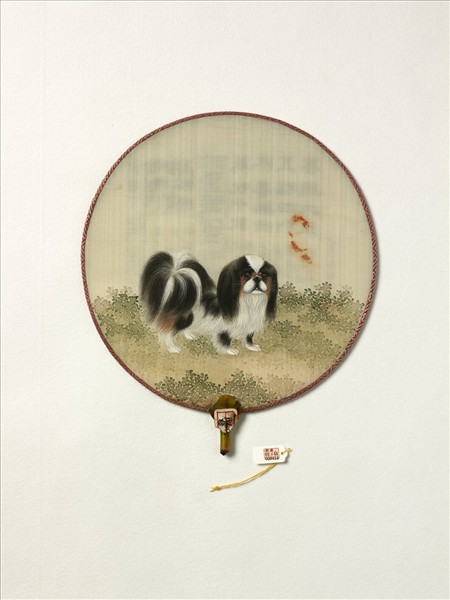 清李廷樑五體書清人畫狗 成扇 清人畫狗