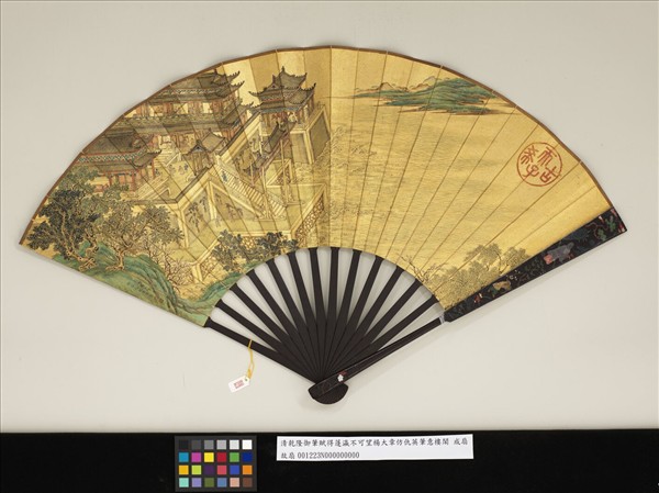 清乾隆御筆賦得蓬瀛不可望楊大章仿仇英筆意樓閣 成扇 楊大章仿仇英筆意樓閣