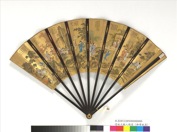 清乾隆御臨王羲之書姚文瀚畫于敏中書杜甫飲中八仙歌 成扇 姚文瀚畫于敏中書杜甫飲中八仙歌