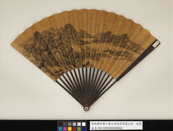 清乾隆御筆王羲之帖張若澄畫山水 成扇