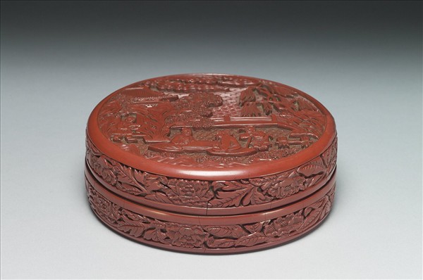 剔紅山水人物圓盒