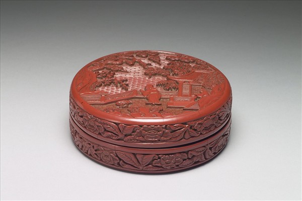 剔紅觀梅圖圓盒