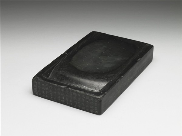 長方抄手式,背斜下,下端無堵。硯色黑黝,具淡黃橫刷絲紋;遍體有四方形或三角形的金色細點不規則的稀疏分布,撫之似略高出石表。硯背鐫篆書銘︰「宣和五年五月五日,帝召邇英殿說書賜此硯,其後子孫世守之。楊時識。」上端側刻乾隆四十三年( 1778)楷銘︰「金星佳品訪於錢,賜識宣和之五年。宋殿說書忠實殫,程門立雪學真傳。道南羅李明承派,議北童梁直斥奸。內聖外王原不二,吾於斯也兩茫然。乾隆戊戌御題。」印:「會心不遠」、「德充符」。楊時(1053 一 1135),字中立,福建將樂人。師程顥、程頤兄弟,宣和初以薦召為邇英殿說書。高宗時為龍圖閣直學土。以著書講學為事,東南學者推為程氏正宗,朱熹、張栻之學,皆出其源。學者稱為龜山先生。此硯收入《西清硯譜》卷九。查歙硯以金星為貴,然傳世所種金花、金暈者,均與此硯之金星不類。