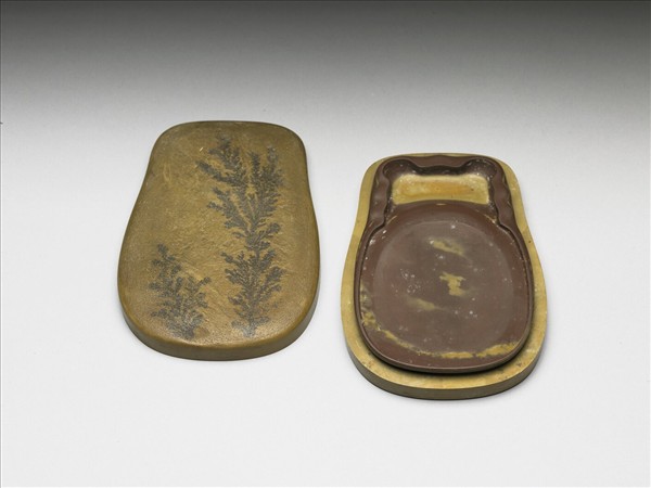 硯長9.5公分 寬6.4公分 高1.0公分;盒長10.4公分 寬7.3公分 高1.8公分