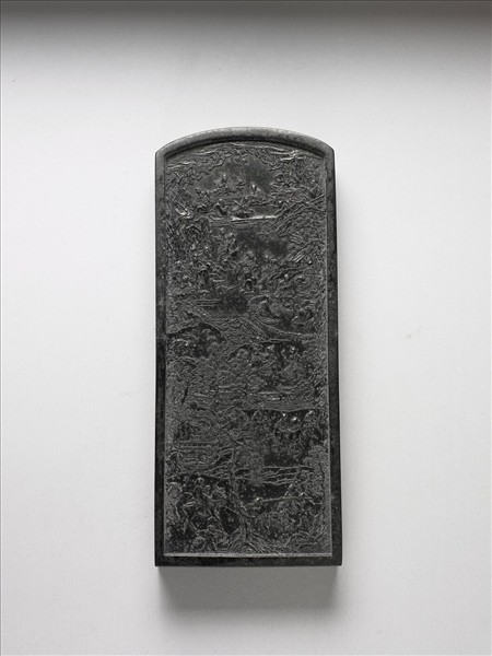長方形墨,一端略弧,邊框起棱。一面填金隸字「東林蓮社」與篆字「御墨」款識,並模鈐填金「得象外意」四字。另面則以「東林蓮社」故事為表現主題,畫面繁麗精美,樹石人物幾乎滿佔墨面。墨兩側分別有「大清乾隆年製」、「靜蓮齋珍藏」楷款。